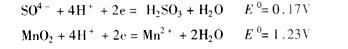 軟錳礦中主要成分是二氧化錳,二氧化錳是強(qiáng)氧化劑,在酸性溶液中具有較強(qiáng)的氧化性,而SO2在水溶液中具有較強(qiáng)的還原性,從它們的標(biāo) 準(zhǔn)電極電位分別為: