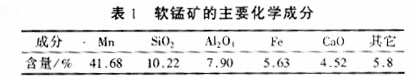 軟錳礦漿:將100~160目的軟錳礦粉直接用清水配置而成。軟錳礦取自貴州某礦山,其成分分析結(jié)果如表1。