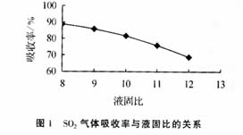在鼓風(fēng)量和吸收溫度不變的條件下,改變液 固比的實(shí)驗(yàn)結(jié)果如圖1。