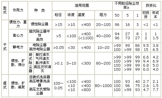 在日常工業(yè)上用于粉塵顆粒物分離的設備主要有:重力沉降式除塵器、慣性除塵器、電除塵器、濕式除塵器、過濾式除塵器、旋風除塵器,簡述如下[1,2,3]: