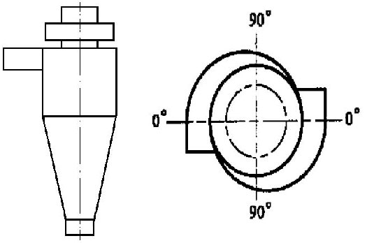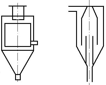 在理論繼續(xù)發(fā)展的同時,旋風除塵器不斷有新的改進措施提出,從而開發(fā)出許多新型高效的旋風除塵器。國內外研究者在旋風除塵器整體改進方面推出了新型旋風除塵器其中以PV型旋風除塵器和環(huán)流式旋風除塵器最為矚目。PV型旋風除塵器由石油大學、洛陽石油化工工程公司和原北京設計院聯(lián)合開發(fā),為中國石油化工集團公司專有技術,已幾乎在所有的催化裂化裝置中得到成功應用,而且又在化工及煤炭發(fā)電等領域中得到推廣應用,應該說是很成熟的一項先進技術。[15,16]新型環(huán)流式旋風除塵器(國家發(fā)明專利產品,專利號: ZL 92219769.5)。如圖1,環(huán)流式旋風除塵器的外型與常規(guī)型旋風除塵器相似,但器內增設了強化分離效率的內件。該除塵器具有壓降低、放大效應小、分離效率高、操作穩(wěn)定性好等特點[17,18,19]。