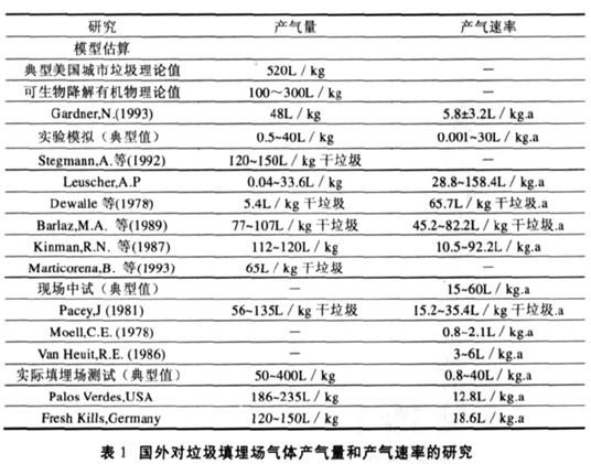 目前,國外對填埋氣成份、產量及產氣速率方面的研究主要采取模型估算、實驗模擬和現(xiàn)場測試( 包括小范圍中試和實際填埋場測試)。