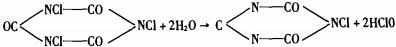(3)三氯異氰尿酸(強(qiáng)氯精):縮寫為TCCA。分子式為:C3O3N3Cl3三氯異氰尿酸也是白色結(jié)晶物質(zhì),伴有很強(qiáng)的氯臭味,有效氯含量90%以上,是目前市面上含氯消毒劑中氯含量最高的產(chǎn)品。比重0.96,在水中的溶解度為1.2克/100克,遇酸、堿易分解。溶于水中也能產(chǎn)生次氯酸,反應(yīng)式為: