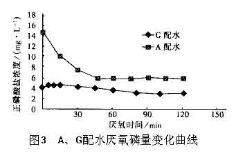 A、G兩種配水混合液厭氧磷濃度變化如圖3所示。