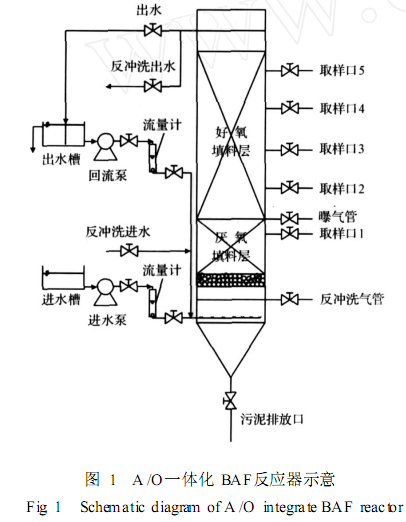曝氣生物濾池(biologicalaeratedfilter,簡(jiǎn)稱(chēng)BAF)作為一種固定式生物膜反應(yīng)器,是利用載體表面上生長(zhǎng)的生物膜達(dá)到凈化廢水的目的。在BAF中,生物量濃度可以達(dá)到活性污泥法的8~9倍,因而能獲得較高的有機(jī)物去除效果;而且該反應(yīng)器還具有較強(qiáng)的抗沖擊能力,污泥產(chǎn)生量少等優(yōu)點(diǎn),被廣泛地應(yīng)用在多種廢水的處理工藝中。