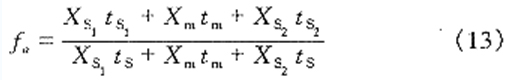 對(duì)于不同類型的氧化溝,需要引入有效性系數(shù)fa,其中帶有體外沉淀池的氧化溝fa=1.0,而其他類型的氧化溝fa是不同的。以三溝式氧化溝為例,如果假設(shè)三溝是等體積的,則fa如下計(jì)算: