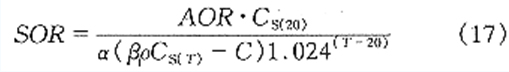 式中α——不同污水的氧轉(zhuǎn)移速率參數(shù),對(duì)生活污水取值0.5~0.95