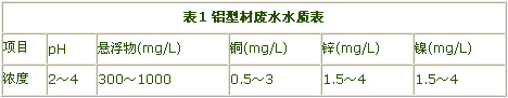 鋁型材生產(chǎn)過程主要包括對成型鋁材的脫脂、堿蝕、酸洗、氧化、封孔及著色,而經(jīng)上述工序處理后的型材均需用水進行清洗,這部分型材清洗水以溢流形式排出清洗槽,是鋁型材廠廢水的主要來源。鋁型材廠生產(chǎn)廢水除含有大量的鋁離子,還含有部分鋅、鎳、銅等金屬離子,廢水的酸堿度視各生產(chǎn)要求不同而有所變化,但呈酸性的居多。