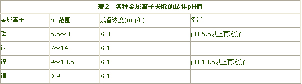 ② 由于鋁在溶液中的兩性狀態(tài),鋁離子在廢水中也起著凈水劑的作用,同時在加入的各種絮凝劑、混凝劑中也含有大量的鋁,所以在處理后的水質(zhì)項目中沒有對鋁的濃度作出要求。
