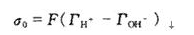 ΓH+和ΓOH-分別為H+和OH-離子的分析表面超量(或表面過(guò)剩),即在單位面積的表面層中,所含溶質(zhì)物質(zhì)的量與具有相同數(shù)量的溶劑的本體溶液中所含溶質(zhì)物質(zhì)的量之差。