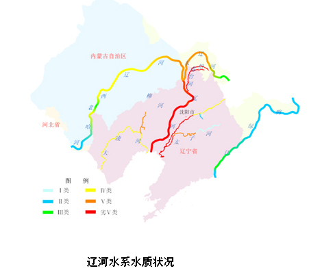 遼河水系 水質(zhì)總體為中度污染。37個(gè)地表水國(guó)控監(jiān)測(cè)斷面中,Ⅱ~Ⅲ類、Ⅳ類、Ⅴ類和劣Ⅴ類水質(zhì)的斷面比例分別為35.1%、13.5% 、18.9%和32.5%。主要污染指標(biāo)為石油類、高錳酸鹽指數(shù)和氨氮。