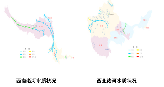 西南諸河 水質(zhì)總體良好。17個(gè)地表水國(guó)控監(jiān)測(cè)斷面中,Ⅱ~Ⅲ類和劣Ⅴ類水質(zhì)的斷面比例分別為88.2%和11.8%。主要污染指標(biāo)為鉛。