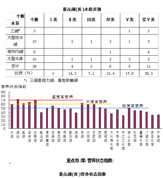 重點(diǎn)大型淡水湖泊水質(zhì)狀況