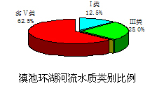 滇池環(huán)湖河流水質(zhì)總體為重度污染。8個(gè)地表水國(guó)控監(jiān)測(cè)斷面中,Ⅰ~Ⅲ類和劣Ⅴ類水質(zhì)的斷面比例分別為37.5%和62.5%。與上年相比,水質(zhì)有所好轉(zhuǎn)。主要污染指標(biāo)為氨氮、五日生化需氧量和石油類。