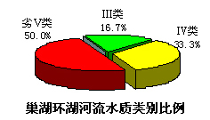 巢湖環(huán)湖河流水質(zhì)總體為重度污染。12個(gè)地表水國(guó)控監(jiān)測(cè)斷面中(包括兩個(gè)納污控制斷面),Ⅲ類、Ⅳ類和劣Ⅴ類水質(zhì)的斷面比例分別為16.7%、33.3%和50.0%。主要污染指標(biāo)為石油類、氨氮和高錳酸鹽指數(shù)。