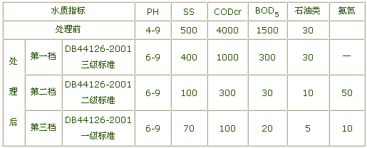 根據(jù)上述情況,我們擬定了研究試驗(yàn)工作的進(jìn)水水質(zhì)和處理出水水質(zhì)目標(biāo)。鑒于此類廢水處理難度大,國(guó)內(nèi)尚缺乏可借鑒的經(jīng)驗(yàn),我們擬定的處理出水水質(zhì)分為三個(gè)檔次要求,詳見(jiàn)表1。