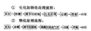 根據(jù)原水水質(zhì)及處理后水質(zhì)要求,初步選定物化處理及生化加物化處理兩種工藝流程進(jìn)行比較,具體流程如下: