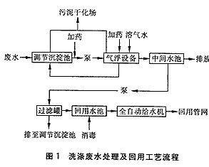 根據(jù)原水水質(zhì)檢測情況可以得知,一般情況下BOD5/COD<30%,較難生化。若采用生化法,還需補(bǔ)充生活污水以增強(qiáng)生化效果,這樣處理后的水回用于洗車及洗滌臥具等,在思想上不易被使用單位所接受。另外,廢水經(jīng)生物處理后,可達(dá)到排放標(biāo)準(zhǔn),若要回用,還需進(jìn)行物化處理,處理流程復(fù)雜,占地面積大,基建費(fèi)用高。再者,生化法對操作管理水平要求高,物化處理運(yùn)行管理較為簡便易行,并且在對負(fù)荷變化及間歇運(yùn)行的適應(yīng)性等方面,比生化法稍好。
