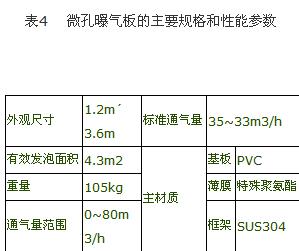 表4 中列出了微孔曝氣板的主要規(guī)格和性能參數(shù)。
