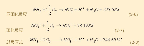 硝化作用是指將NH3-N氧化為NOx--N的生物化學(xué)反應(yīng),這個(gè)過程由亞硝酸菌和硝酸菌共同完成,包括亞硝化反應(yīng)和硝化反應(yīng)兩個(gè)步驟。該反應(yīng)歷程為: