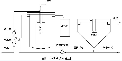試驗(yàn)采用HCR[5]為主反應(yīng)器,系統(tǒng)主要由反應(yīng)器和沉淀池組成(圖1),反應(yīng)器有效容積為15L,沉淀池有效容積為30L。我們?cè)鴮⑦@一技術(shù)成功地應(yīng)用于南寧味精廠的廢水治理工程中[6],并取得了顯著的環(huán)境效益和經(jīng)濟(jì)效益。
