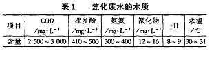 所用焦化廢水為焦化廠蒸氨前廢水,其水質(zhì)見表1: