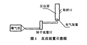 試驗(yàn)裝置如同1所示,反應(yīng)器的容積為1000mL。試驗(yàn)設(shè)備有HGX-180型空壓機(jī),ZB-10玻璃轉(zhuǎn)子流量計(jì)和活性炭(圓柱狀活性炭,粒徑約為1mm)。試驗(yàn)時(shí),先將活性炭在球磨機(jī)中研磨,然后分離出不同粒徑活性炭,水洗烘干后備用。