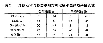 比較了分散和靜態(tài)條件下活性炭對(duì)焦化廢水中主要污染物的去除率。在曝氣條件下,活性炭
