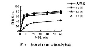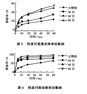 活性炭因具有豐富的孔徑分布和很大的比表面積而且有很強(qiáng)的吸附能力。試驗(yàn)表明,活性炭粒徑減小可明顯提高焦化廢水的處理效果。分散的活性炭對(duì)COD、氨氮、酚和氰化物都有很好的去除效果。這可能是由于顆粒度決定了比表面積。研磨后的活性炭粒度變小,可以更充分發(fā)揮粉末活性炭微孔、中孔的作用,并且路徑比顆粒活性炭短,加快了傳質(zhì)過程。另外活性炭粒徑變小后,活性炭接觸焦化廢水的表面積增大,吸附性能提高。但活性炭粒徑并不是越小越好,因?yàn)榱皆叫,活性炭的成本越高,同時(shí)容易凝聚,再生也困難。