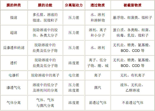 以高分子分離膜為代表的膜分離技術(shù)作為一種新型的流體分離單元操作技術(shù),三十年來取得了令人矚目的巨大發(fā)展。據(jù)有關(guān)文獻(xiàn)估計(jì),今天的分離膜世界市場規(guī)模已達(dá)到每年20億美元以上。表1和圖1分別給出了按分離原理和按被分離物質(zhì)的大小區(qū)分的分離膜種類,從中可以看出,除了透析膜主要用于醫(yī)療用途以外,幾乎所有的分離膜技術(shù)均可以應(yīng)用使用、天然氣及石油化工行業(yè)中去。反滲透和納濾作為主要的水及其它液體分離膜之一,在分離膜領(lǐng)域內(nèi)占重要地位。