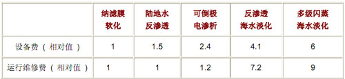 表 2 美國大型水廠各種脫鹽方法的經(jīng)濟(jì)比較
