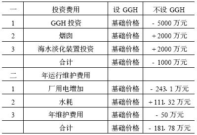 (1) 取消GGH 節(jié)省投資約5000 萬元。