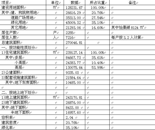 總平面主要技術(shù)經(jīng)濟(jì)指標(biāo):