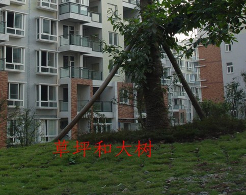 小區(qū)內(nèi)的每一個(gè)花臺(tái)、苗圃、樹林、草坪等綠化用地均設(shè)計(jì)布置有足夠的灌溉用水龍頭,水龍頭的水來自高位水箱。