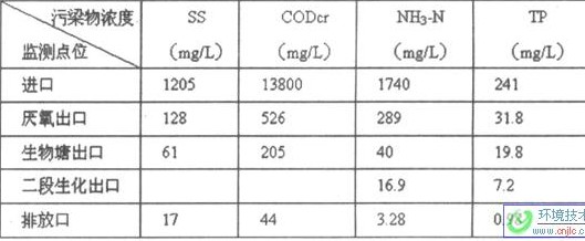年出欄1萬(wàn)頭菜豬,2003年采用IATS工藝和方案四工藝.2004年6月投入運(yùn)行至今,穩(wěn)定達(dá)標(biāo)排放,厭氧產(chǎn)氣正常,監(jiān)測(cè)數(shù)據(jù)見表6—2。