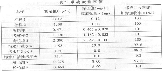 值在保證值范圍內(nèi),各實(shí)際水樣的加標(biāo)回收率為97.6%一102%。