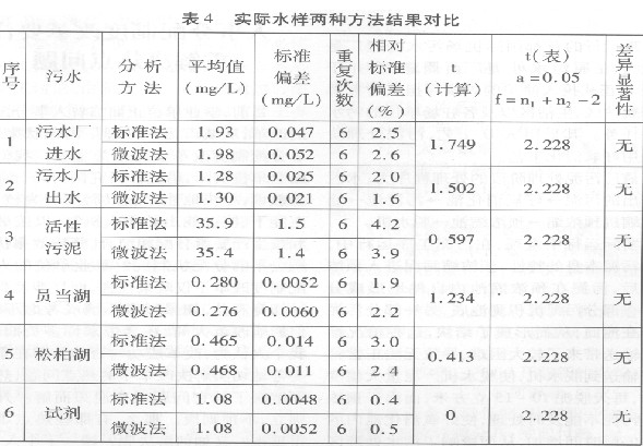 4.1通過精密度、準(zhǔn)確度對(duì)比實(shí)驗(yàn),數(shù)據(jù)表明,微波消解法是快速測(cè)定總磷的有效方法。方法簡便,快速易操作,有較好的精密度和準(zhǔn)確度。