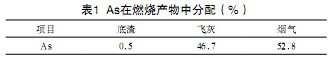 從表1可以看出,As元素主要分布于電除塵器飛灰和煙氣中,由于煤粉爐中飛灰量遠(yuǎn)大于底渣量,從而表現(xiàn)出飛灰中的As元素份額遠(yuǎn)大于底渣中的份額。