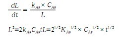 實(shí)驗(yàn)研究表明,砷首先在催化劑表面發(fā)生反應(yīng),然后滲入催化劑內(nèi)部,形成一個(gè)砷的飽和層。將這個(gè)飽和層的厚度設(shè)為L(zhǎng),計(jì)算L隨時(shí)間 t 的變化規(guī)律: