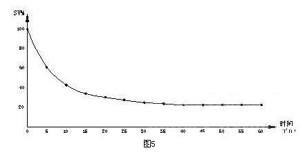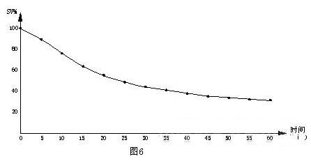 當80≤SVI≤200左右時,活性污泥的沉淀性能較好。由圖5可見整個沉降過程平穩(wěn),活性污泥的沉淀性能良好,說明活性污泥狀態(tài)良好,各項運行參數(shù)正常,不需進行工藝調(diào)整。由圖6可見活性污泥的沉淀性能一般,尤其在前5分鐘污泥的沉淀效果差。曲線形狀與圖1、圖2相類似,且絮凝體較松散分散,該種沉降曲線是發(fā)生污泥膨脹的一種先兆。根據(jù)曝氣池運行的其它參數(shù)可知,曝氣池中污泥濃度較高,進曝氣池的污水中SS偏低,即新鮮污泥的加入量較少,曝氣池中的污泥趨于陳舊。在此種情況下,應采取加大剩余污泥排放量,防止由于污泥齡過長引起的污泥膨脹。