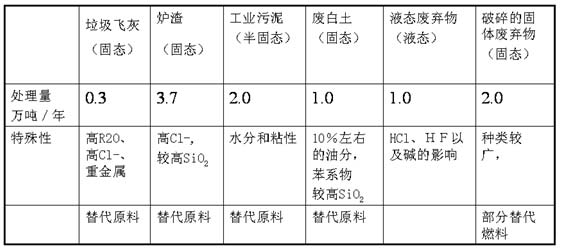 下圖為北京水泥廠有限責(zé)任公司處置10萬噸城市有毒有害危險廢物示范工程年處理廢物種類的表格介紹: