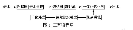 該污水處理廠采用側(cè)溝式一體化氧化溝工藝,其工藝流程如圖1: