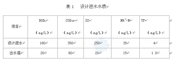 工程一期設(shè)計規(guī)模25000m3/d,分兩組,每組12500m3/d。考慮到除磷的要求,在氧化溝前段置厭氧段。設(shè)計總停留時間16h,氧化溝有效容積8500m3,有效水深4.1m,溝寬10.5m。設(shè)計污泥濃度MLSS=4000mg/L,污泥負(fù)荷F/M=0.046kgBOD5/(kgMLVSS.d)。主要設(shè)備包括:曝氣轉(zhuǎn)盤ZP-9-1400,每組4臺,功率37kW;7.5kW水下推動器每組3臺,設(shè)置在主溝;2.2kW水下攪拌器1臺于厭氧區(qū)。設(shè)計采用厭氧、好氧兩區(qū)共壁合建,使整體結(jié)構(gòu)緊湊,又有較好的能量分區(qū)。設(shè)計進(jìn)出水水質(zhì)如下: