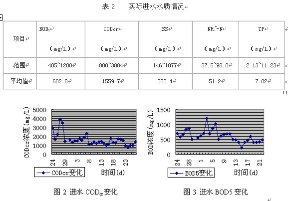 該污水處理廠實際進(jìn)水水質(zhì)與設(shè)計值有較大的偏差。由于當(dāng)時設(shè)計考慮的是處理城市生活污水,而實際進(jìn)水中工業(yè)廢水占了相當(dāng)大的比例,使進(jìn)水水質(zhì)相當(dāng)復(fù)雜。表2為調(diào)試運行期間實際進(jìn)水水質(zhì)情況。