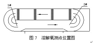 在系統(tǒng)運行過程中,曾對DO進(jìn)行密切監(jiān)控。由于進(jìn)水BOD5濃度高,尤其是夜間進(jìn)水CODcr可高達(dá)3000~5000mg/L,故使系統(tǒng)DO長期處于不穩(wěn)定狀態(tài)。DO控制測點選取位置見圖7。1#處為最高點測點,DO在1.0~2.5之間變化,2#為最低點測點,DO大部分時間在0.5mg/L以下。另外在每個轉(zhuǎn)盤的前后都布置DO測點,以控制每一曝氣段的DO水平。一般認(rèn)為低的DO濃度是引起污泥膨脹的主要原因之一,然而該系統(tǒng)在高負(fù)荷低DO條件下并未出現(xiàn)絲狀菌膨脹(鏡檢發(fā)現(xiàn)絲狀菌始終豐度始終在c~d級之間)。也有研究表明,低的DO濃度并不是引起絲狀菌膨脹的充分和必要條件。該廠出現(xiàn)的污泥膨脹實系高負(fù)荷F/M沖擊,營養(yǎng)物缺乏所致,而并非低DO濃度。另外由于氧化溝前段設(shè)置厭氧段,設(shè)計是為除磷而設(shè)。實際上起著厭氧選擇器的作用。按厭氧選擇器分析認(rèn)為:絕大部分種類的絲狀菌(球衣菌)都是絕對好氧的,在絕對厭氧條件下將受到抑制,而絕大部分的菌膠團(tuán)細(xì)菌為兼性菌,在厭氧狀態(tài)下將進(jìn)行厭氧代謝,繼續(xù)增殖,故而能有效的抑制絲狀菌污泥膨脹,實際觀察也證實了這一點。