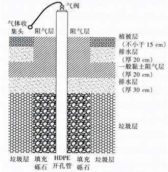 在傳統(tǒng)衛(wèi)生填埋場(chǎng)設(shè)計(jì)中,規(guī)范要求填埋場(chǎng)必須設(shè)置有效的填埋氣體導(dǎo)排設(shè)施,填埋氣體嚴(yán)禁自然聚集、遷移等,防止引起火災(zāi)和爆炸。其導(dǎo)排設(shè)施宜采用豎井(管),也可采用橫管(溝)或橫豎相連的導(dǎo)排設(shè)施。在規(guī)范中對(duì)氣體的回收利用則沒有作任何規(guī)定和要求。