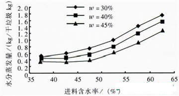 ![]() 圖3進(jìn)料和出料含水率與水分蒸發(fā)量的關(guān)系曲線 |
