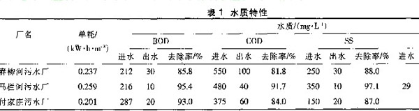 大連市3座集中污水處理廠的水質(zhì)特性如表1所示。