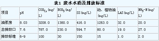 以中轉(zhuǎn)和儲存動、植物油(棕櫚油)為主的某公司廠區(qū)排放的廢水主要由兩部分組成:一部分是生產(chǎn)經(jīng)營過程中產(chǎn)生的凝固程度高的油脂廢水(包括裝車臺地面沖洗水、油泵房沖洗水、儲油罐沖洗水及罐區(qū)地面初期雨水),其水質(zhì)水量變化大,含油濃度高,由于在沖洗過程中大量使用洗滌劑,使廢水乳化程度高,呈乳白粘稠狀;另一部分是綜合樓排放的日常生活污水,其水質(zhì)、水量較為穩(wěn)定,污染程度較輕。