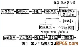 某水廠現(xiàn)供水規(guī)模為35×104m3/d。因源水水質(zhì)日趨惡化而于1999年開始對原微絮凝直接過濾工藝進行了技術改造,現(xiàn)工藝流程見圖1。
